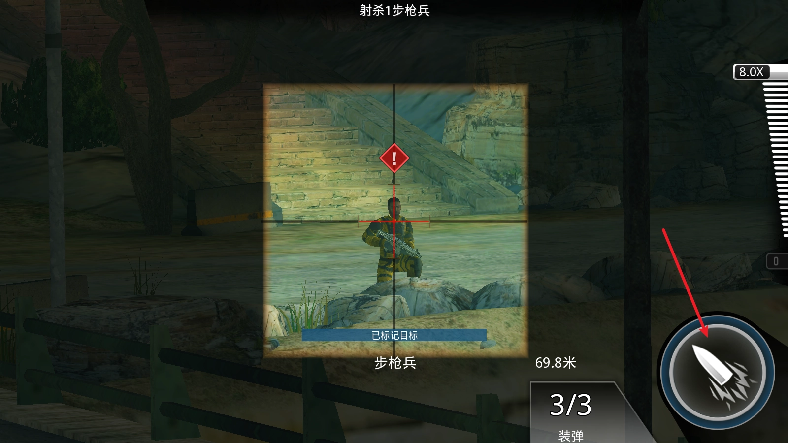 3.你需要滑动右边的倍镜来放大敌人