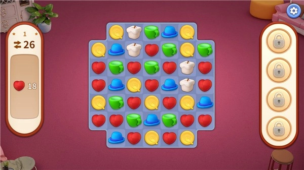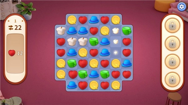 关卡的难度设计感觉还不错,而且每间屋子拆分出来的通关数量也在可接受的范围内,不会因为玩太多三消而产生倦怠感。