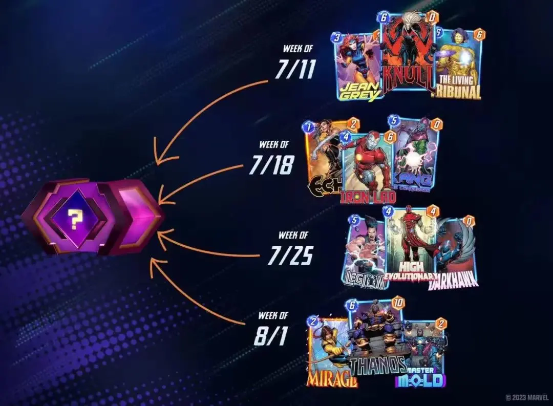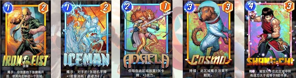中文卡表: 蚁人、夜行者、刀锋战士、莫比亚斯、安吉拉、蜂群、金刚狼、毕肖普、西芙女士、剑仙、天启、阿美莉卡