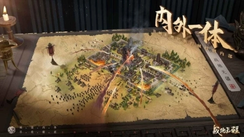 2、摒弃了传统策略游戏内外城场景分离的设计,将玩家的内城建筑直接安置在大地图上,以城墙围之,所有的城建、升级全都在大地图沙盘上完成。