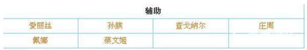 爱丽丝-孙膑,查戈纳尔-庄周,佩娜-蔡文姬。