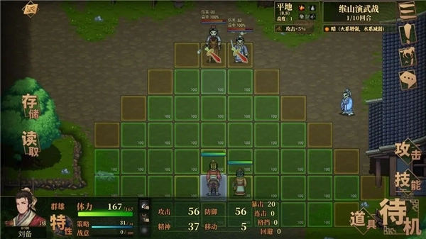 点击武将即可控制武将行军位置,可在界面查看武将信息以及技能介绍。每次行动只能选择一个操作(技能/攻击)然后结束回合!请根据实际情况进行战棋调整。