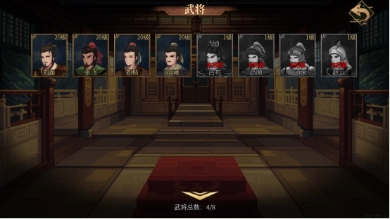 目前武将总数为8个,分别为(刘备、张飞、刘楷、简雍、吕布、高顺、邢道荣、赵云)。