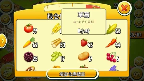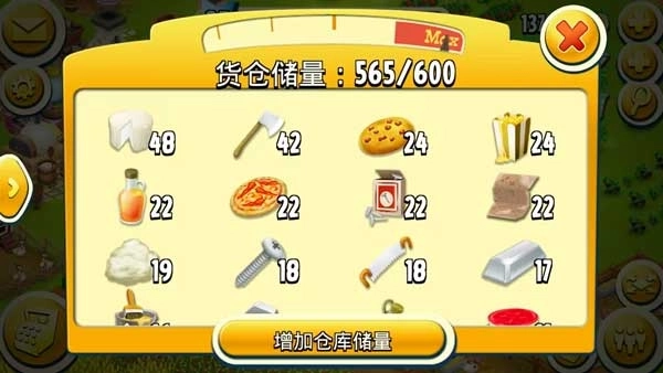 1、刷农作物和收集畜产品时,大约每60次会爆出一个物品,可能是铲子之类的材料,也可能是锯子,或者是扩建相关的东西,还有可能是升仓材料。