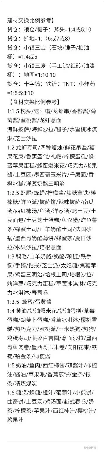 【建材交换比例参考】