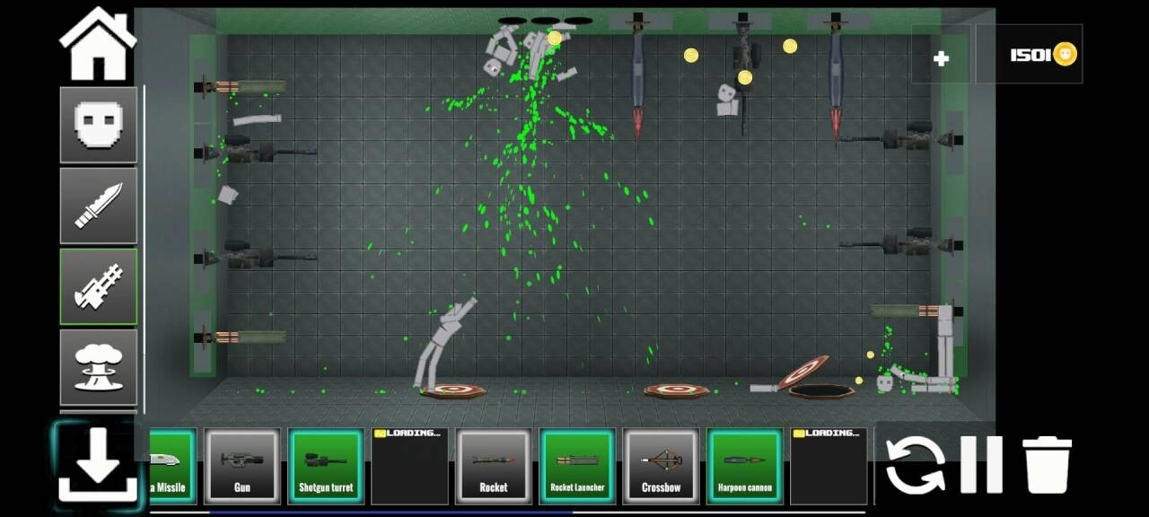 3、你可以根据自己的想象力进行设置的调整,尝试不同的工具组合,并观察人偶在扭曲、爆炸和解体的滑稽而又恐怖的结果。