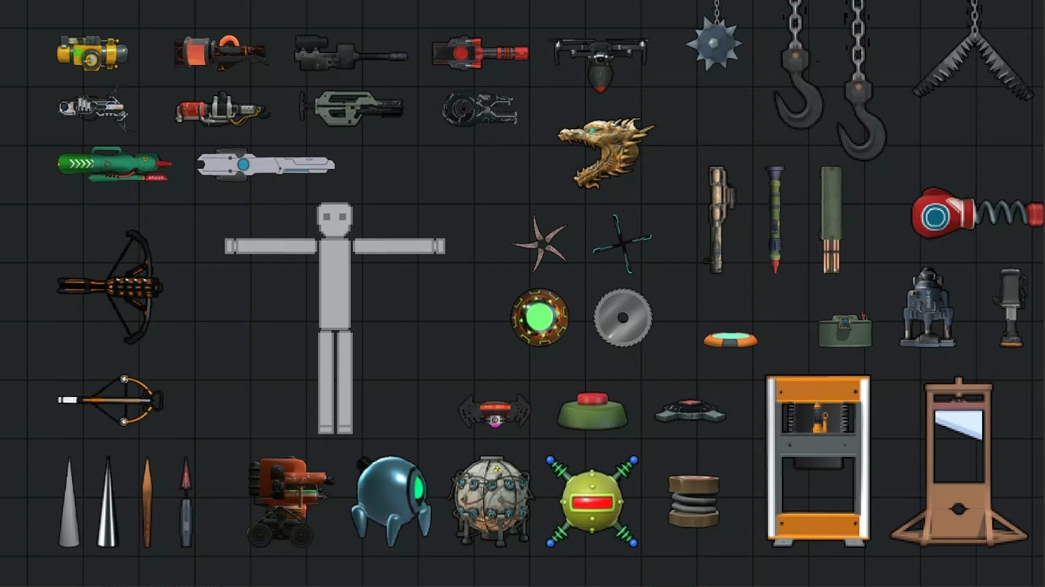 2、游戏提供了从简单的武器如刀和枪到复杂的设备如锯和黑洞等各种选择。