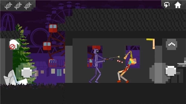 1、主要的目标是使用各种工具,包括蹦床、风扇和大炮,以任何可能的方式摧毁游戏室中的敌人。