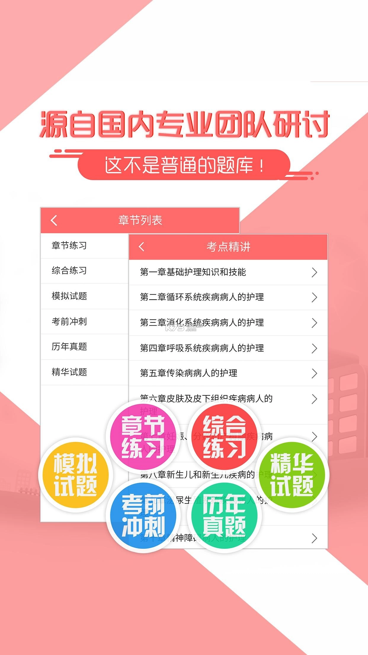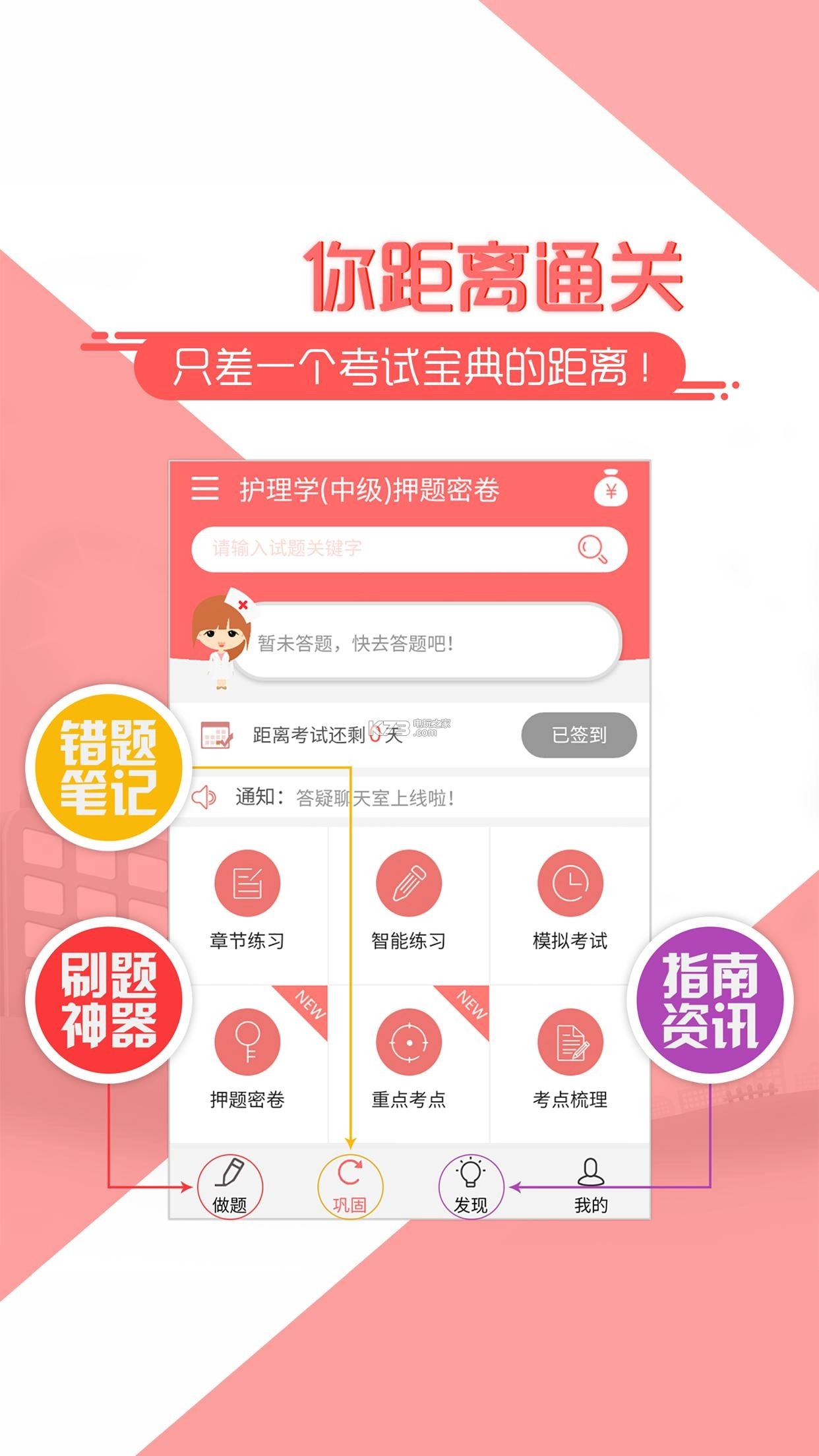 2017版护士护理考试宝典迎来全新升级,这可是卫生资格考试的独家资料。无论是护士执业资格考试,还是主管护师、护理职称考试,它都是您的必选软件。软件具备专业全新题库、直播精讲、视频详解以及考点讲义知识等丰富内容,助您在护考之路上畅通无阻,从此护考再无敌手!别犹豫啦,赶紧来下载吧!