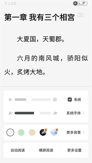 3、对于阅读界面的亮度、颜色、字体等等进行设置。