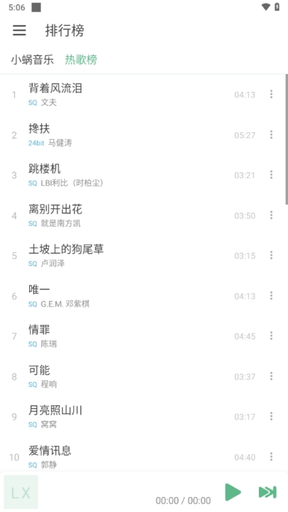 4、在歌曲库空空如也的时候,也可以尝试查看排行榜,各大热门音乐播放器的歌曲排行一目了然