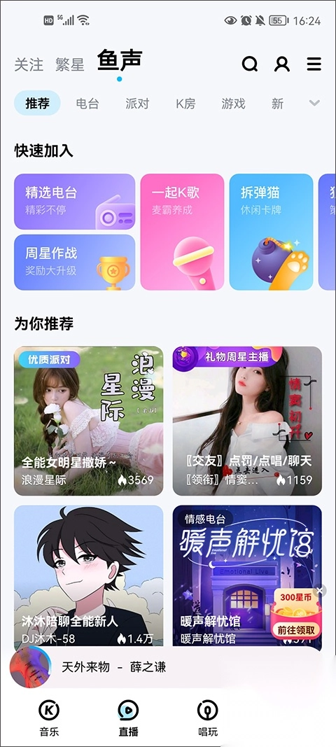 每天都有超过6000位主播24小时不间断现场直播,你点她唱,与千万音乐爱好者同时互动,造就网络好声音;