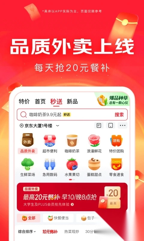 【京东外卖】最快9分钟送达,超20分钟免单