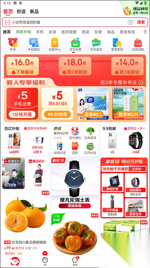 【新人频道】新人专享,大牌好货0.01元包邮