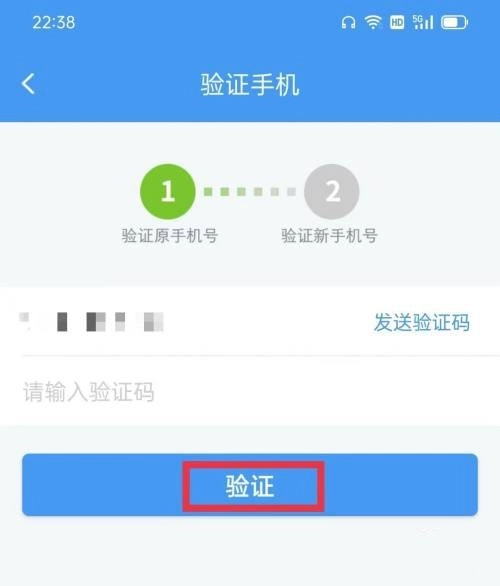 4、在当前页面输入验证码,单击验证,输入新手机号,验证信息即可。