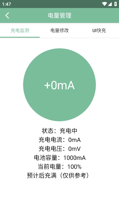 5. 打开电量管理界面,查看充电状态,检查电流、电压等参数,以此了解设备的用电状况,为电量监测提供辅助。