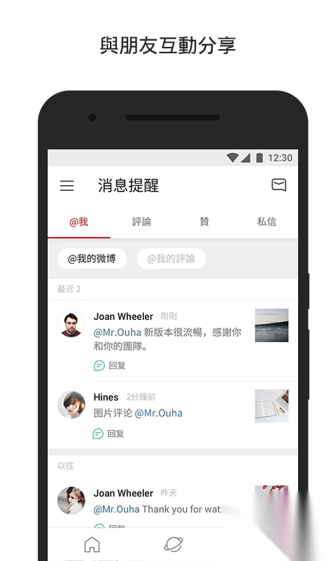 @我的模块、评论模块、赞模块以及私信模块,区分更为清晰,方便阅读,且彼此之间互不干扰。
