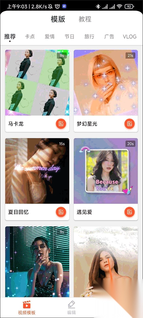 2、多段视频拼接:支持视频拼接合并,搭配模板,助力创意视频制作。