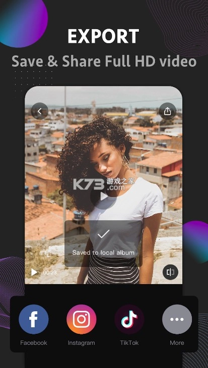 在使用EasyCut视频编辑器创建完视频后,您可将其导出为全高清格式。导出全高清视频后,能轻松地将视频发布在诸如YouTube、Instagram、Chingari、Roposo、Likee等您喜爱的任意SNS平台上。