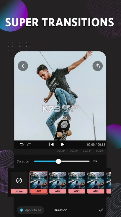 EasyCut操作便捷,短短30秒就能创作出精彩视频。这款视频编辑器具备音乐、效果、滤镜、贴纸、动作、字幕等诸多实用功能,拥有CapCut、InShot、ShowCut等同类移动应用所不具备的独特优势。