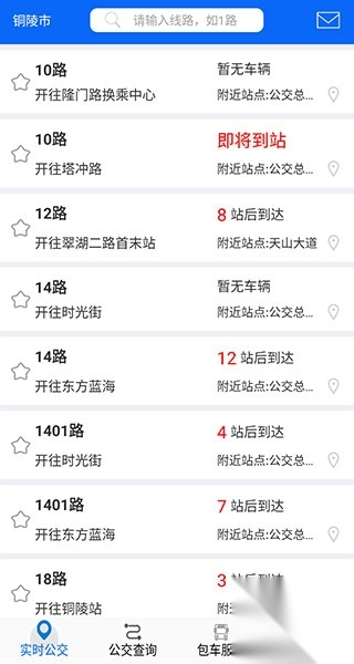 铜陵公交app功能丰富,涵盖掌上公交电子站牌、公交到离站提醒、线路信息、乘车方案指导以及周边地图服务等。借助这款app,用户能迅速精准地获取公交运营相关资讯。用户随时随地都能查询最近公交站点的位置,轻松抵达站点候车。同时,还能快速知晓下一趟公交的到达时间,便于更合理、有计划地安排剩余时间。对于铜陵居民而言,它是公交出行不可或缺的软件。有需求的用户,赶快到本站下载使用吧。