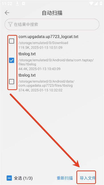4、勾选需要的文本后点击“导入文件”。