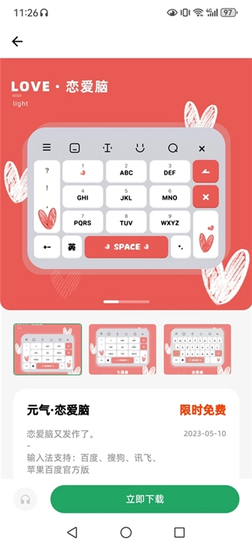 新上线发布的皮肤均可限时免费下载使用,助力更多用户抢先体验免费键盘皮肤。