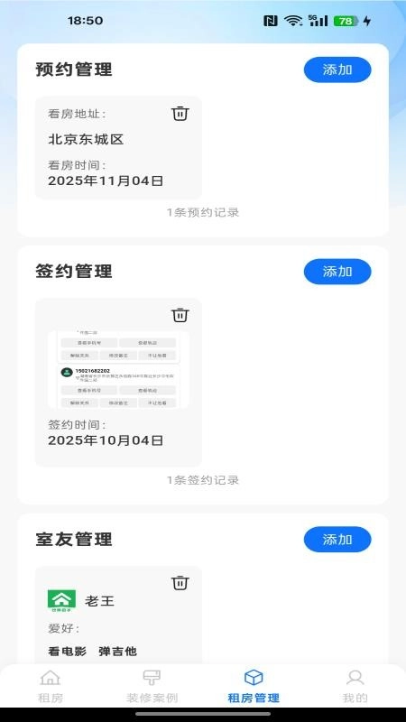 4、进行租房管理,可自定义添加需要的管理,并能轻松预约看房签约等;